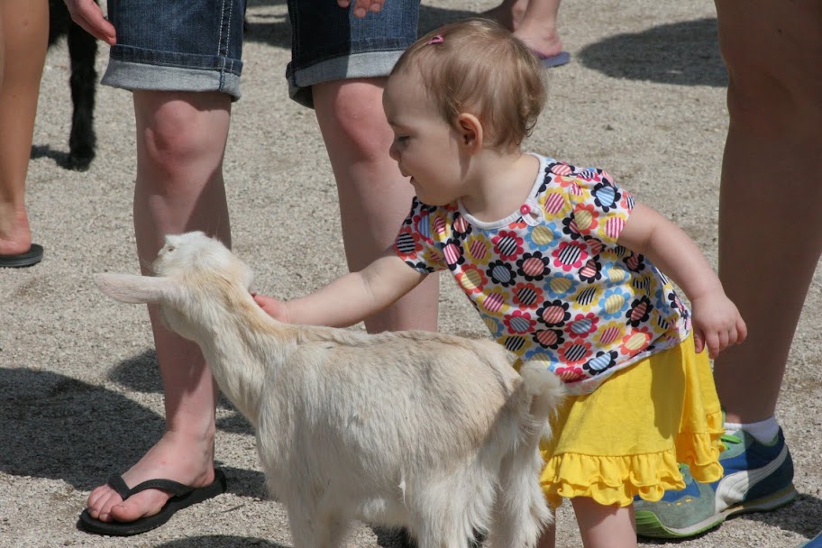 After the baby goats, we visited some baby pigs and some big goats. They weren't as big of a hit. Shortly after that, Sarah got fussy. She was ready for some lunch and a nap. (Not to mention 90 degree weather.) All in all, I would say our family outing was a success.