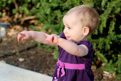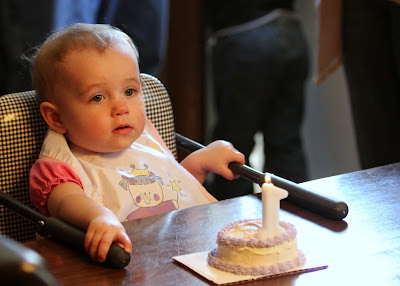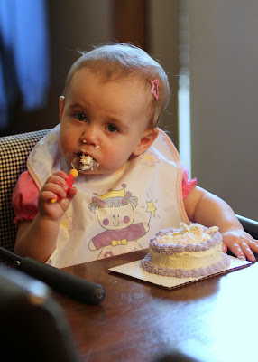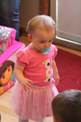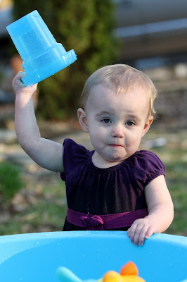 Sarah's party went so well! She had a lot of fun and really seemed to enjoy the gifts she got! I'm really glad I didn't stress and was able to just enjoy the day. Overall I would say her birthday was a success. We had two baths and two outfit changes but that's to be expected with cake and a water table. Enjoy the pictures ... I'm sure there will be more later. We have our 1 year check-up today so I'll post those stats later as well.